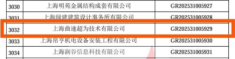近日,根据《高新技术企业认定管理办法》(国科发火〔2016〕32号)和《高新技术企业认定管理工作指引》(国科发火〔2016〕195号)有关规定,上海市认定机构正式公布了 2025 年认定的第二批高新技术企业名单,共计 4736家企业荣耀上榜。其中,浙江曲速科技有限公司全资子公司 —— 上海曲速超为技术有限公司,凭借在 AI 算力与芯片领域的硬核技术实力、突出研发创新与高质量成果,成功入选榜单,荣获国家高新技术企业认定。